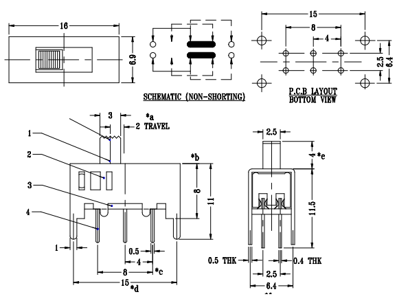 L'interrupteur à glissière 2P3T est un interrupteur de commande bipolaire à trois directions (2 pôles 3 directions) qui permet une commutation à trois états pour deux circuits indépendants (par exemple, marche/arrêt/sélection de mode) via une opération à bascule, idéal pour les scénarios complexes nécessitant un contrôle multi-circuits synchronisé.