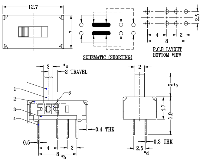 L'interrupteur à glissière 2P3T est un interrupteur de commande bipolaire à trois directions (2 pôles 3 directions) qui permet une commutation à trois états pour deux circuits indépendants (par exemple, marche/arrêt/sélection de mode) via une opération à bascule, idéal pour les scénarios complexes nécessitant un contrôle multi-circuits synchronisé.